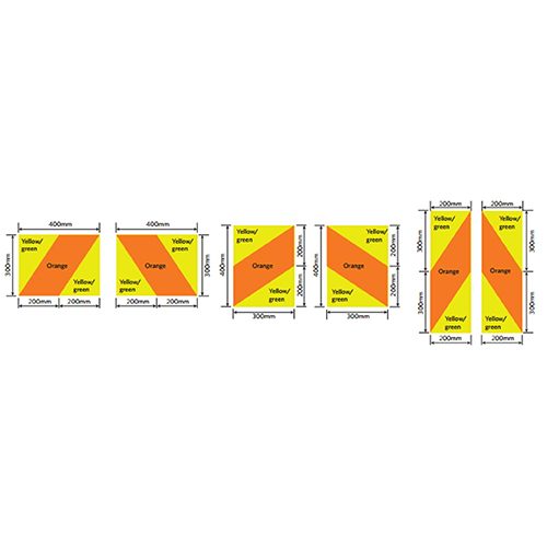 - You may use retro-reflective hazard panels coloured yellow-green with an orange diagonal stripe instead of flags.